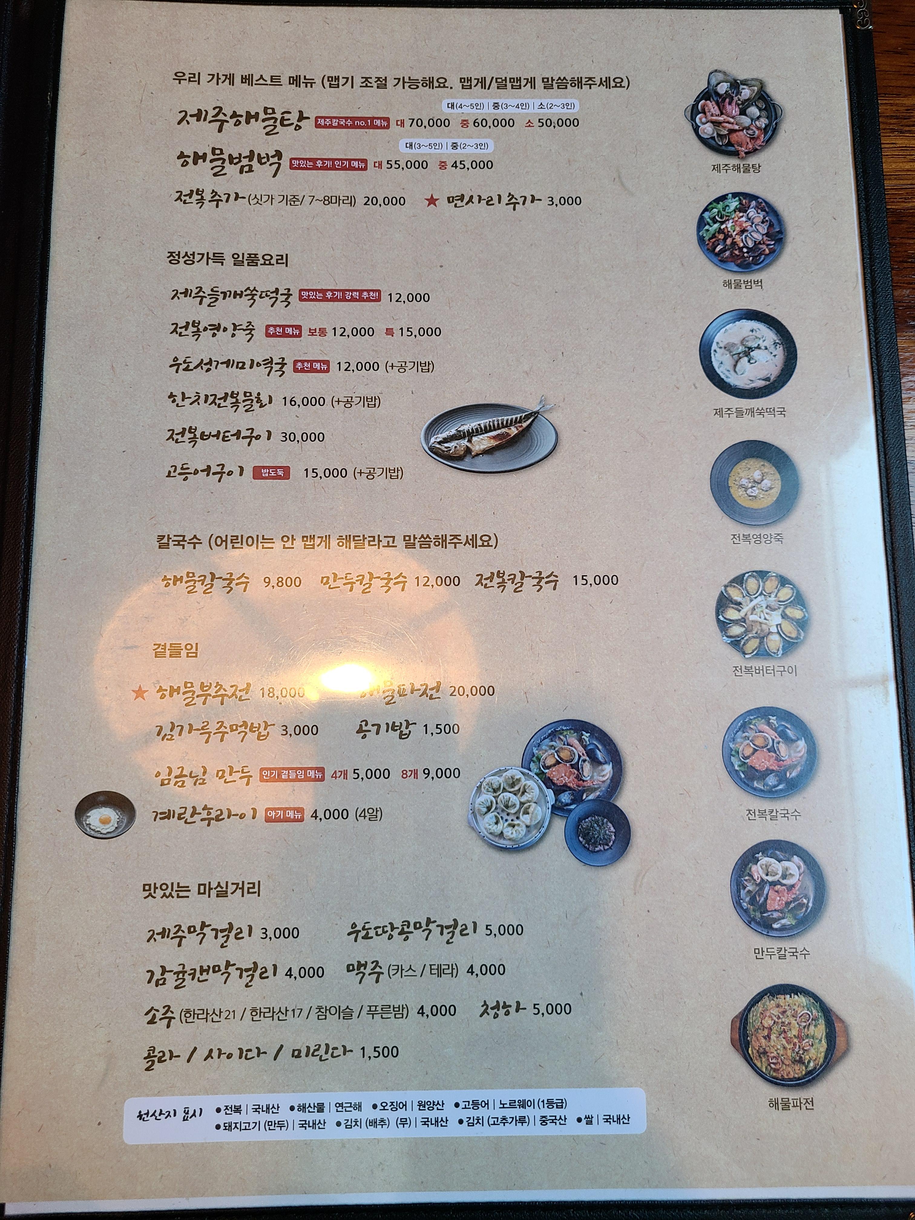 저녁은 멀리 나가기도 싫고 해서 조식을 먹을 수 있는 제주 해물탕 칼국수 집에 가서 먹었어요