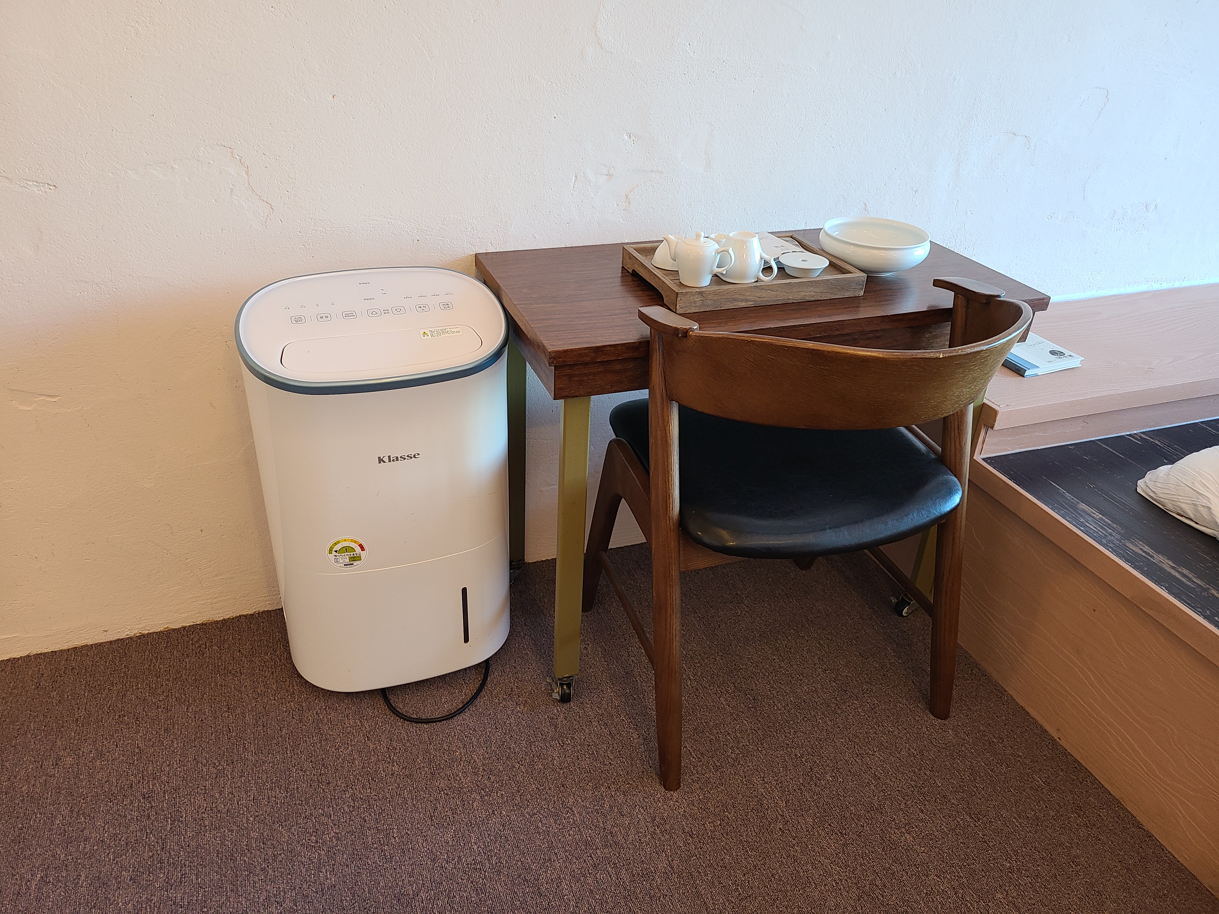침대 옆에는 차를 우려먹을 수 있는 다기 세트가 있었어요.