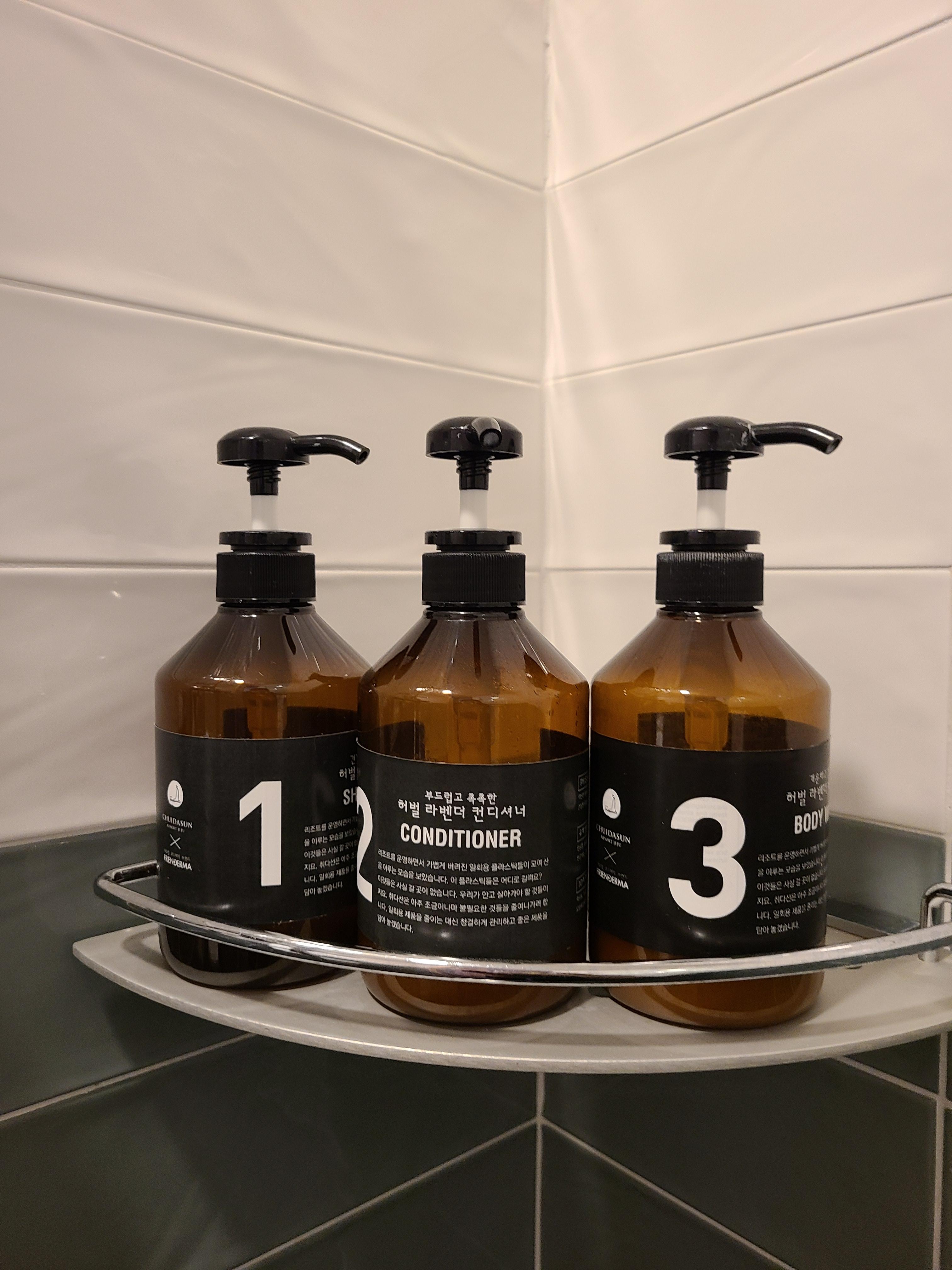 화장실은 비데도 있고, 샴푸 컨디셔너 바디워시도 있어요. 지금은 잘 기억이 안나는데 향이 좋았던 것 같아요.