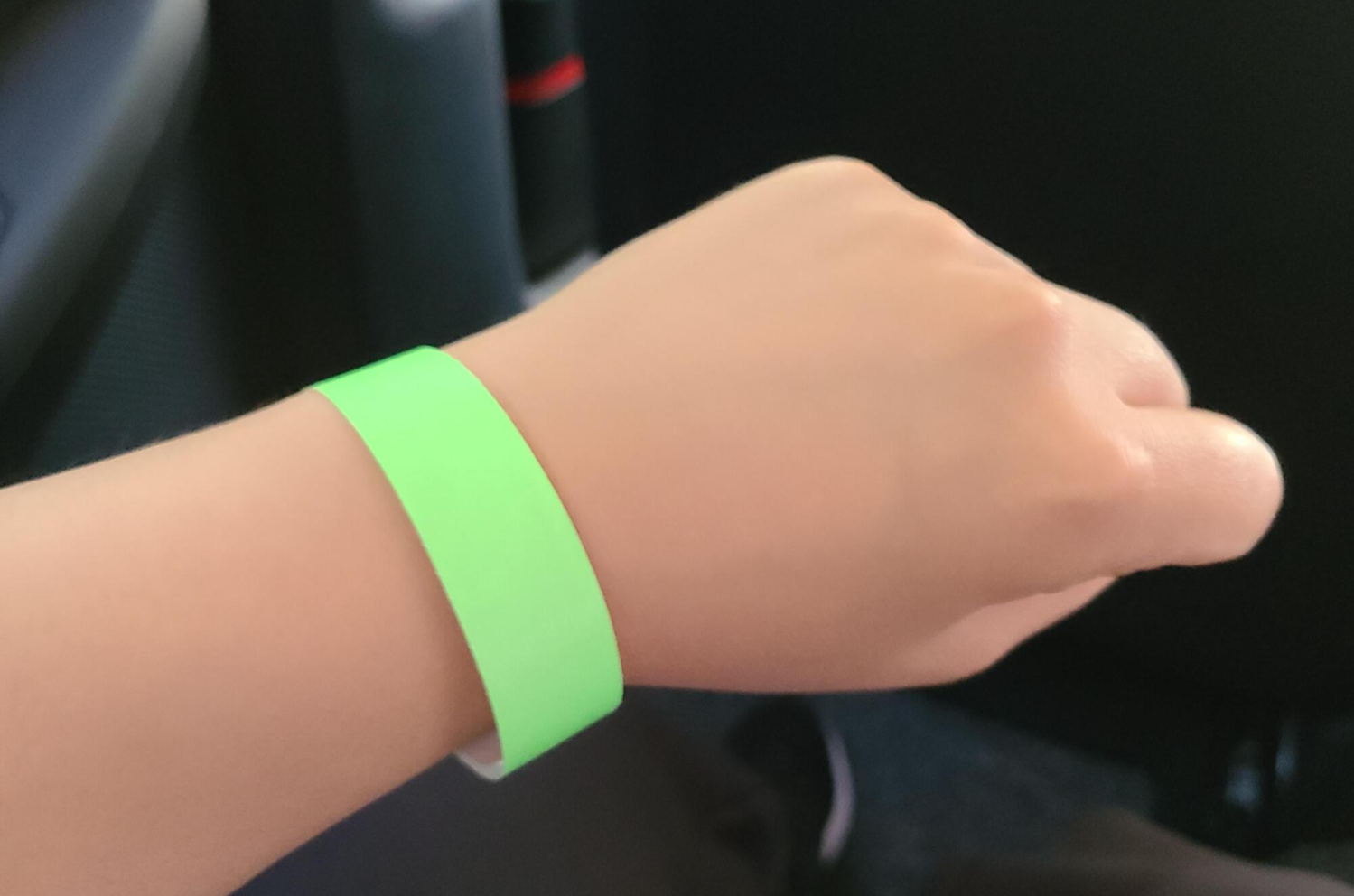 차타고 해수욕장 근처로 들어가는 길에 길에서 발열체크를 하고 종이팔찌를 나눠줬어요.
