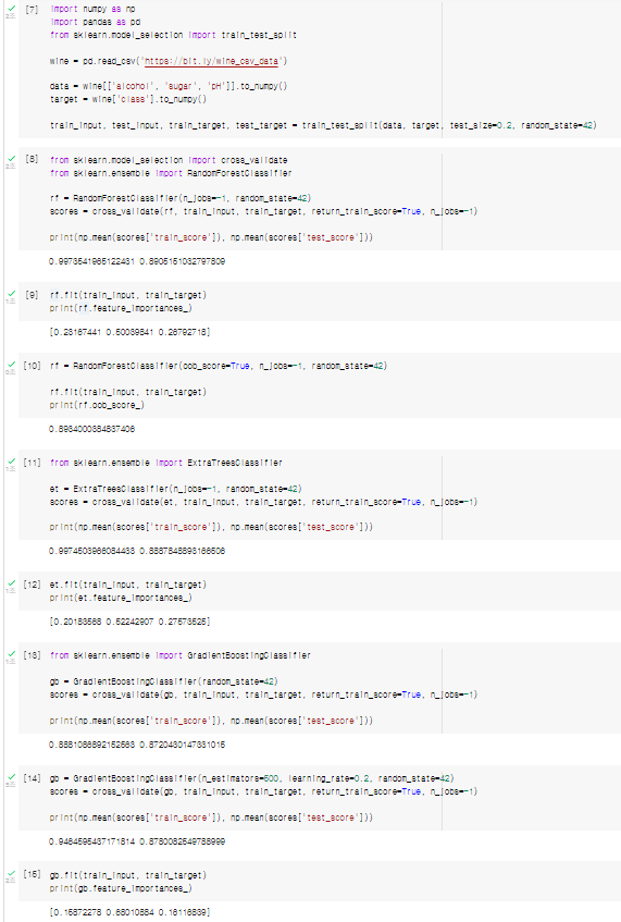 선택미션 : Ch.05-3 앙상블 모델 손코딩 코랩 화면 인증샷