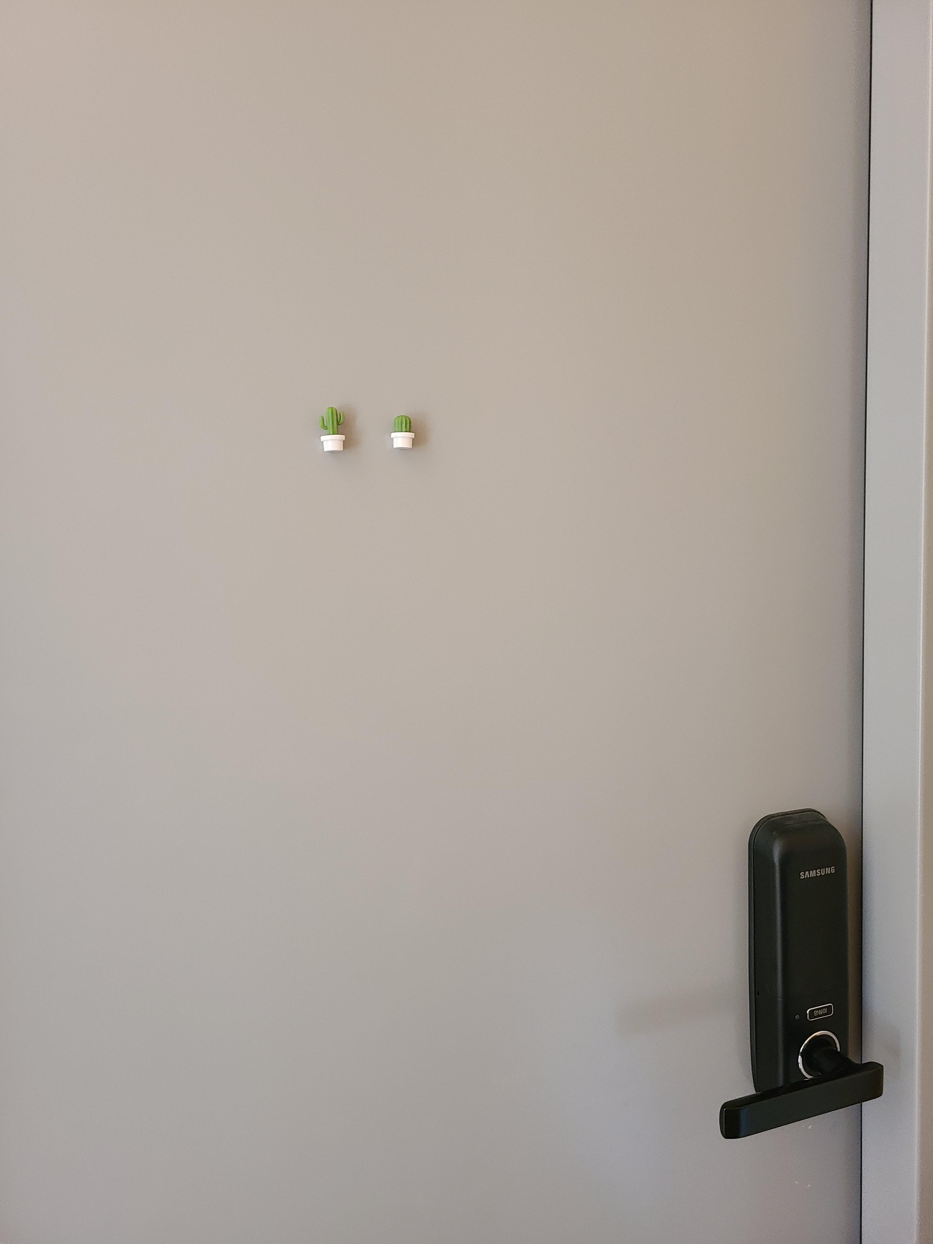 문앞에 붙어있는 선인장 자석이 너무 귀엽다.