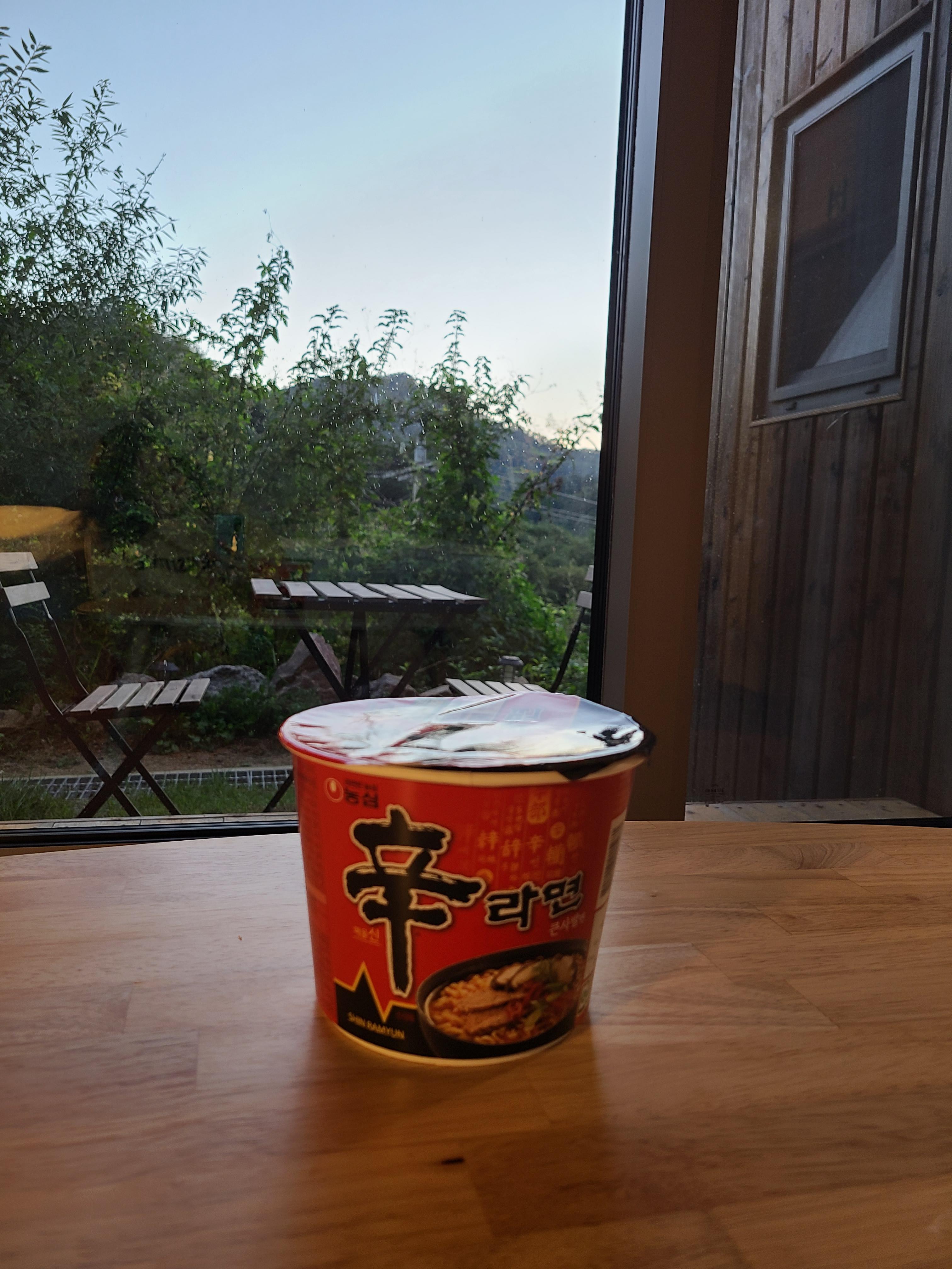 저녁 먹을 생각을 못해서 이곳에서 파는 컵라면을 먹었다.