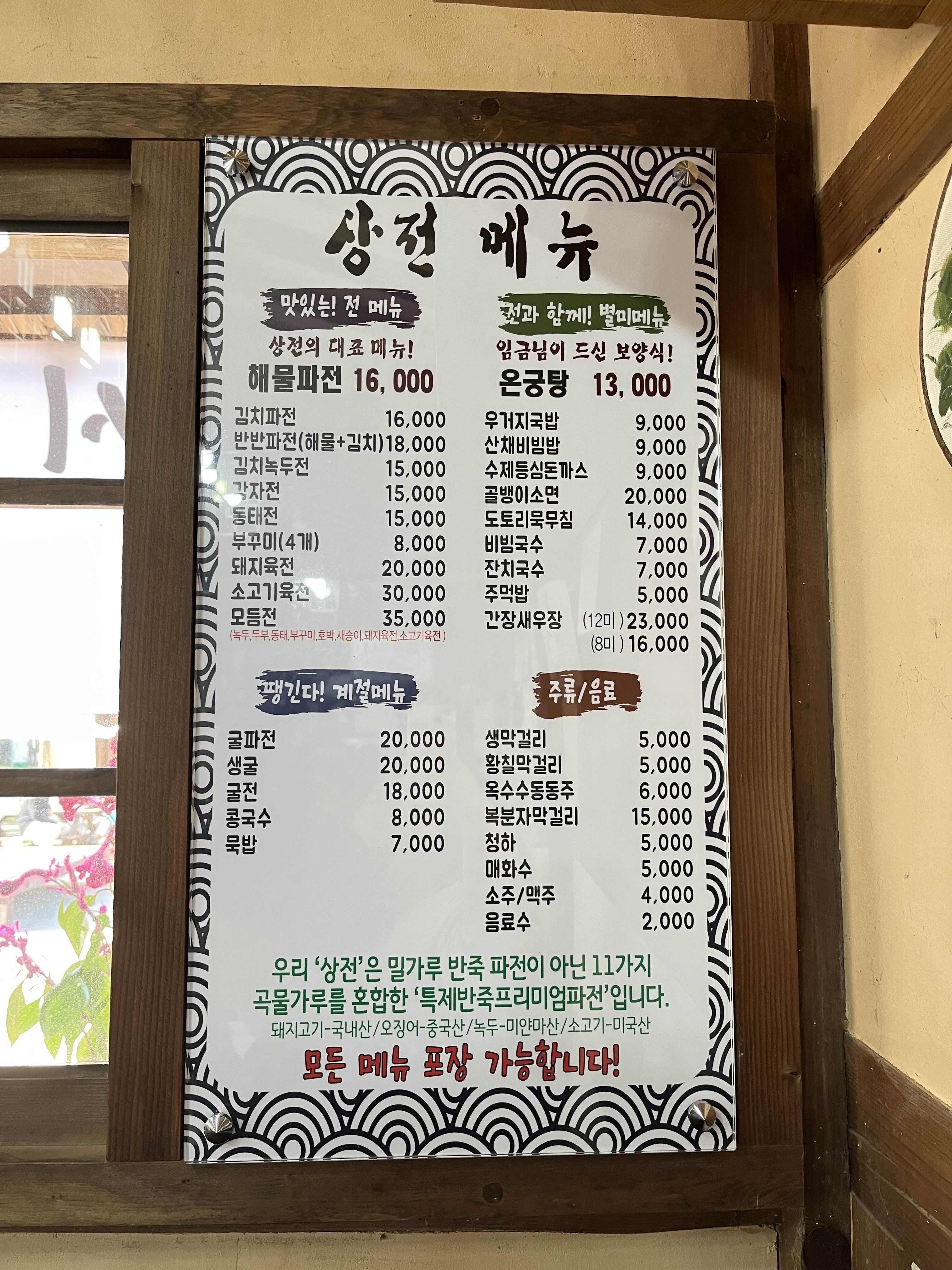 메뉴가 생각보다 엄청 다양했는데, 우리는 파전 하나만 주문했다.
