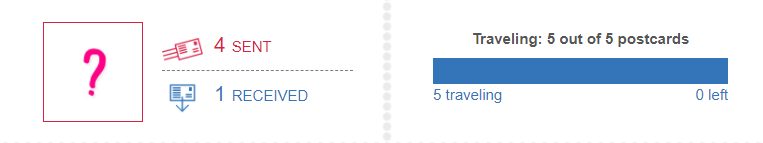 총 4개의 엽서가 도착했다는 소식을 들었고, 5장의 엽서가 여행중이며, 나는 1개의 엽서를 받았다.