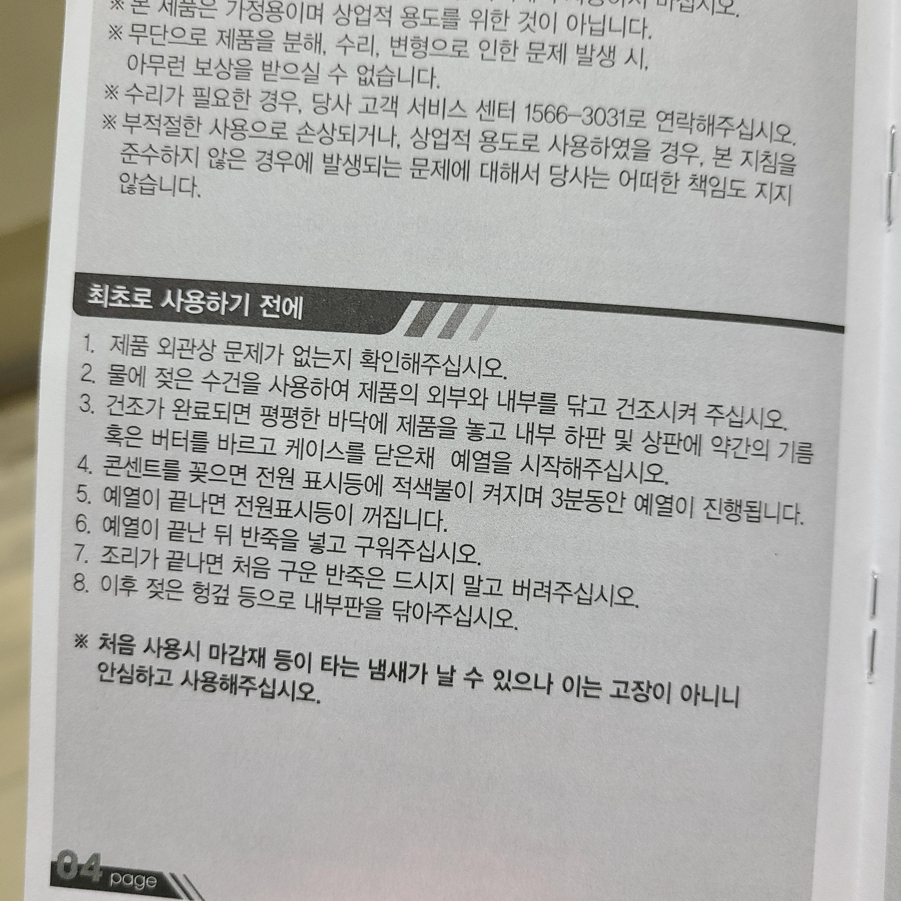 꼭 내부를 한번 청소를 한 다음 사용하셔야 합니다.