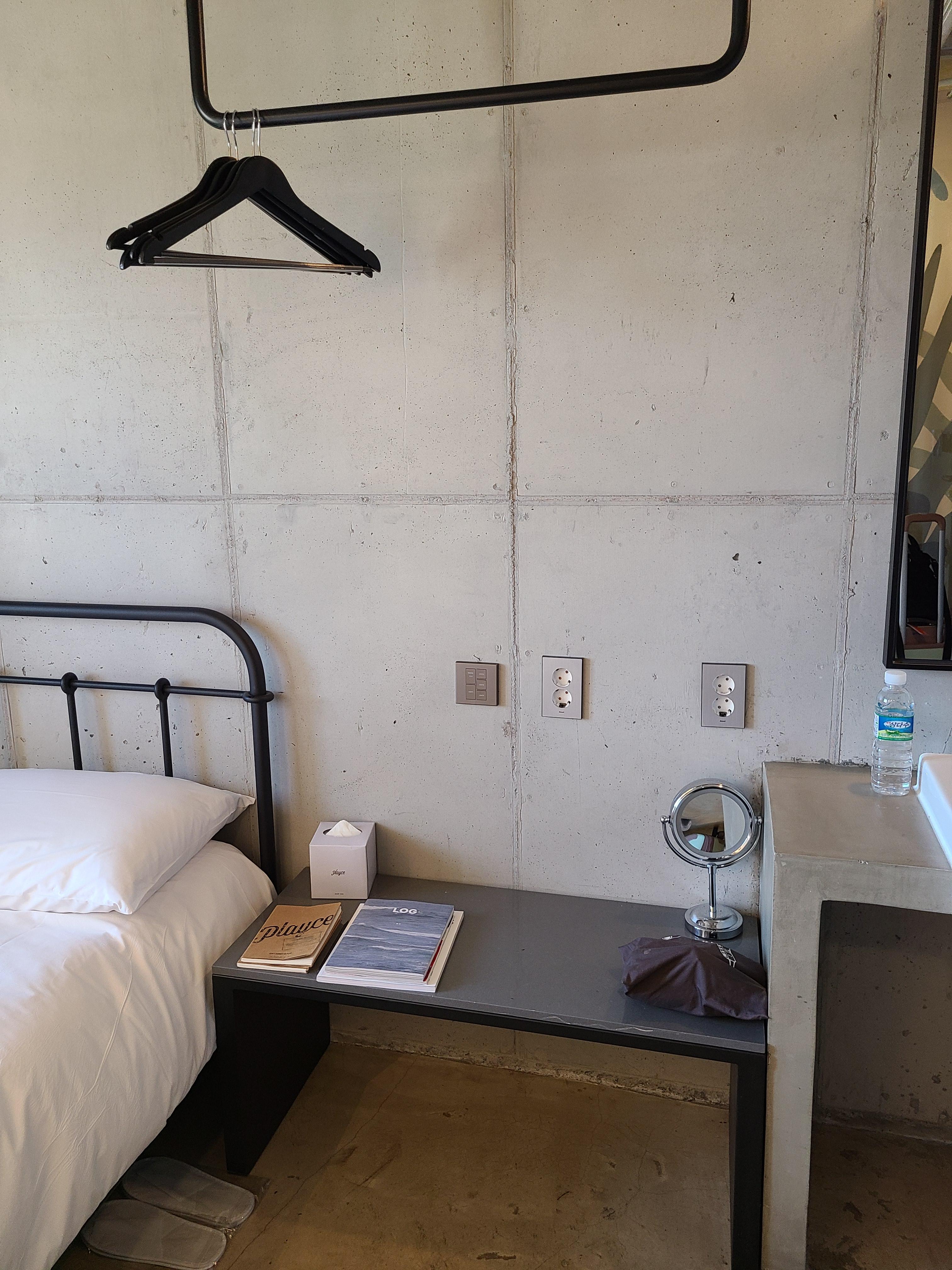 침대 옆에 저 공간에 캐리어를 둘 수 있었는데 왔다갔다 하기가 좀 불편하더라고요.