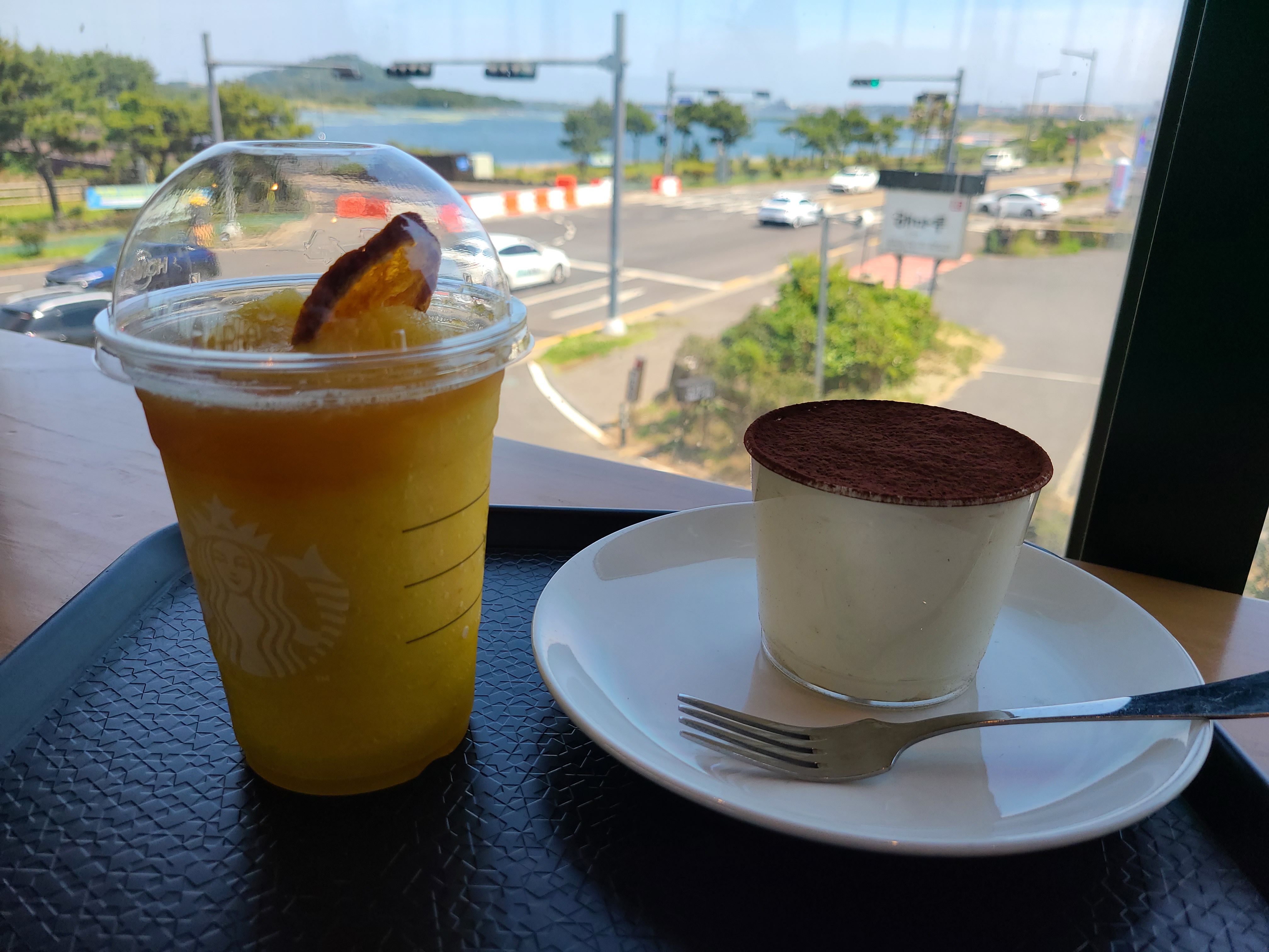다먹고나서는 바로 옆에있는 스타벅스에서 디저트를 먹었습니다.